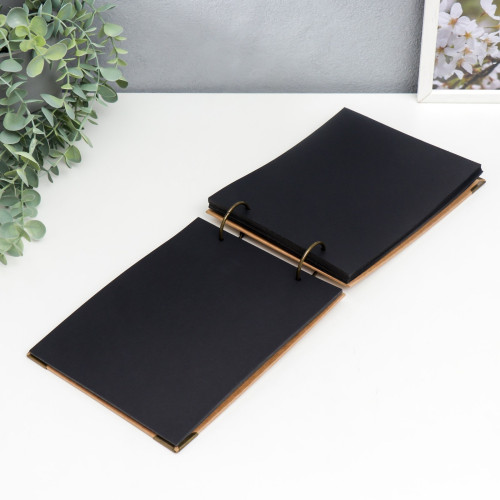 Фотоальбом на кольцах 30 листов чёрных «Крафт малый», плотность 350 г, 17×22 см