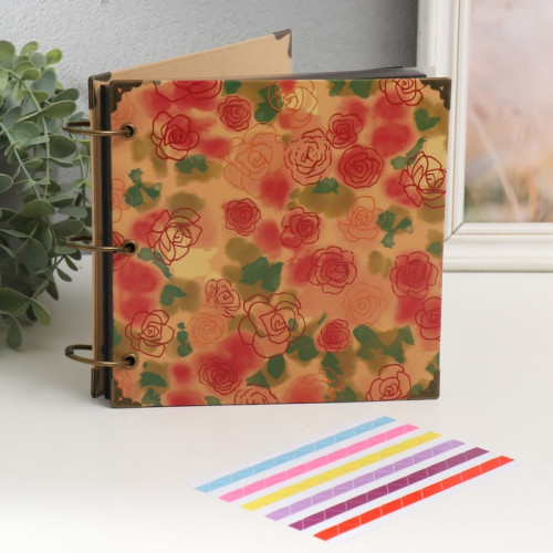 Фотоальбом на кольцах 30 листов «Кустовые розы», чёрные листы, 18×18 см