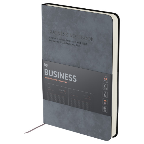 Ежедневник недатированный, А5, 136л., мягкий переплет, кожзам, BG "Business. Grey", серый