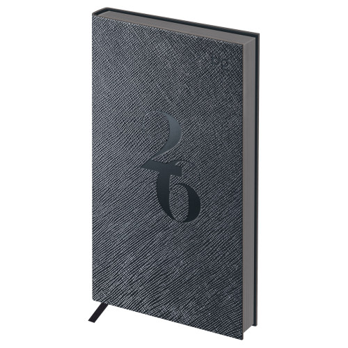 Еженедельник датированный 2026г., 90*165, 64л., мягкий переплет, кожзам, BG "Shine. Iron", серый, цветной срез