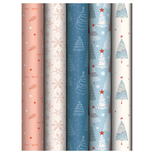 Упаковочная бумага глянц. 70*100см, MESHU "Christmas time", 80г/м2, ассорти 5 дизайнов