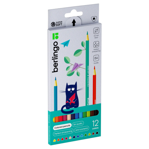 Карандаши цветные Berlingo "SuperSoft. Жил-был кот", 12цв., трехгран., заточен., картон, европодвес