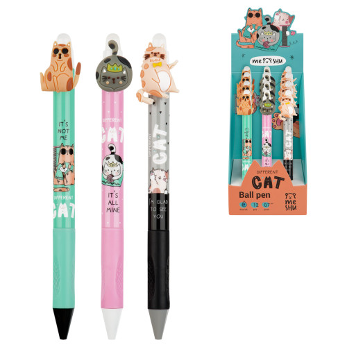 Ручка шариковая автоматическая MESHU "Сat Day" синяя, 0,7мм, грип, корпус ассорти