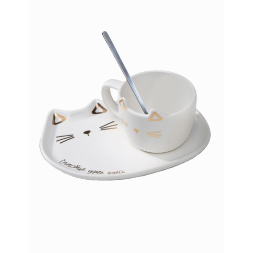 Чайная пара «Счастье уже здесь»: кружка 200 мл, блюдце 18×11 см, ложка