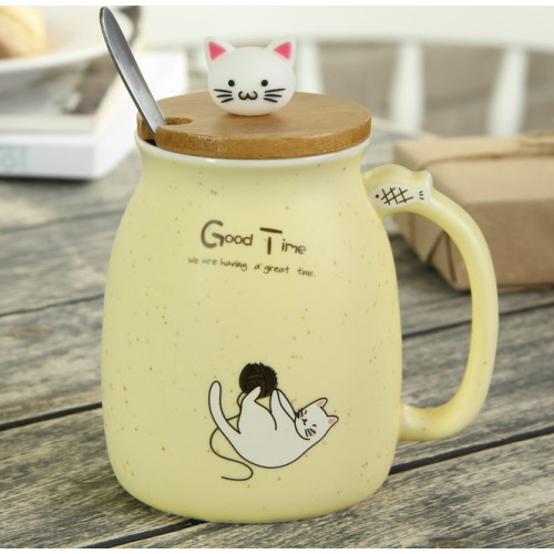 Кружка «Котик», 500 мл, с деревянной крышкой и ложкой