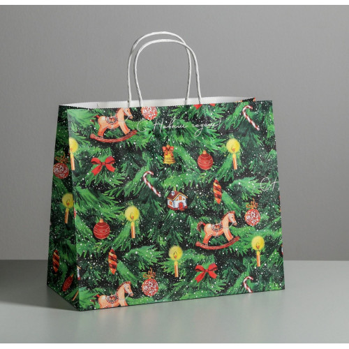 Пакет подарочный крафтовый «Новогодняя ёлочка», 32 × 28 × 15 см 4903782