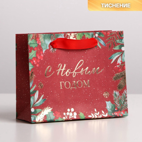 Пакет подарочный новогодний крафтовый «Новогоднее настроение», S 15×12×5.5 см