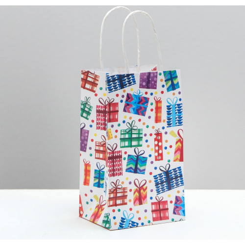 Пакет подарочный крафтовый «Подарочки», 12 × 21 × 9 см
