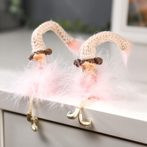 Сувенир Ангелочек-стесняшка в розовой пуховой юбке 18х3,5х4 см