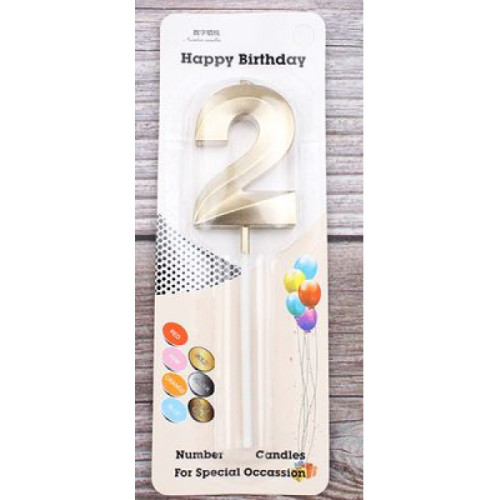 Свеча в торт "День Рождения" (шампань, на шпажке, металлик) цифра "2"